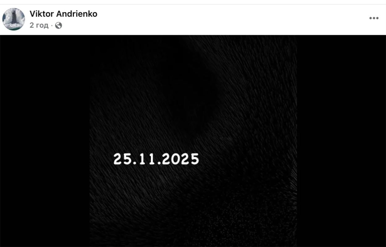 Андрієнко опублікував чорний фон із написом «25.11.2025». У коментарях користувачі мережі висловили свої співчуття через втрату колеги та друга.