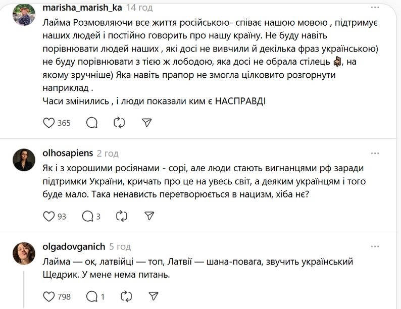 Не всі налаштовані критично. Окремі користувачі нагадують, що Вайкуле — латвійка, яка розкритикувала російську агресію. У 2018 році вона заявила, що принципово не виступатиме в окупованому Криму.