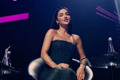 Контраст між суворим чорним і «кривавим» шрифтом був не модним рішенням, а продуманим символом. Ведуча позувала серйозно й стримано, підкреслюючи: її поява на доріжці — це не про образ, а про позицію.
