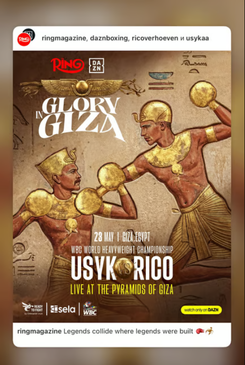 Усик відкллав потенційні поєдинки з топ-боксерами, щоб прийняти цей виклик. Для нього це можливість показати, що боксерська майстерність перевершує навіть найпотужніші удари з кікбоксингу — і зробити це на тлі тисячолітніх пірамід.