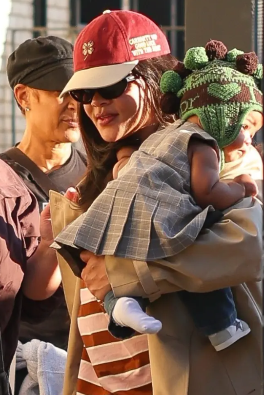 Сама Ріанна, яка нещодавно втретє стала матір'ю, вийшла у кепці Carhartt, смугастому поло Prada і зі своєю культовою сумкою Dior «Дракула».