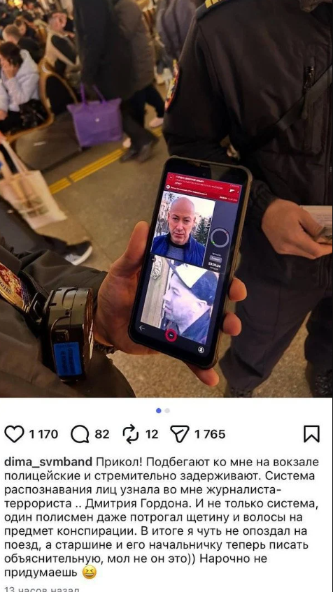 На вокзалі в Санкт-Петербурзі камери стеження «ідентифікували» Дмитра Галямінських — учасника гурту «Свобода важнее моды» — як розшукуваного Гордона. Силовики негайно затримали музиканта. Перевірка набула абсурдного характеру: поліцейські з'ясовували, чи не є часом його борода та волосся театральним гримом. Лише після ретельної перевірки документів стало зрозуміло, що система помилилася, і чоловіка відпустили.